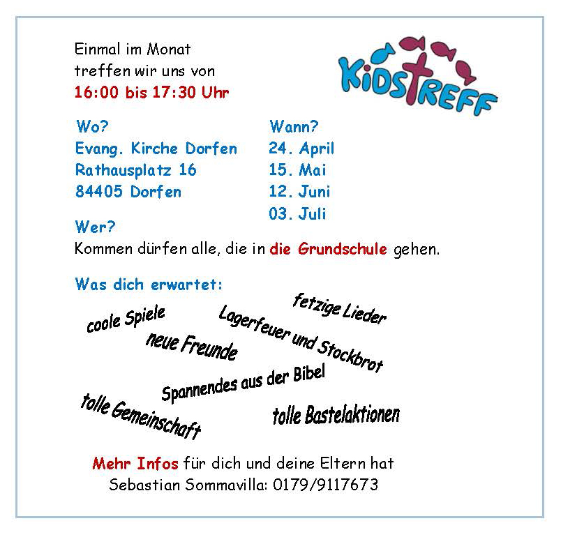 Wenn Sie Fragen zu unseren Angeboten haben oder mitmachen möchten, freuen wir uns über eine Nachricht an das Pfarramt.